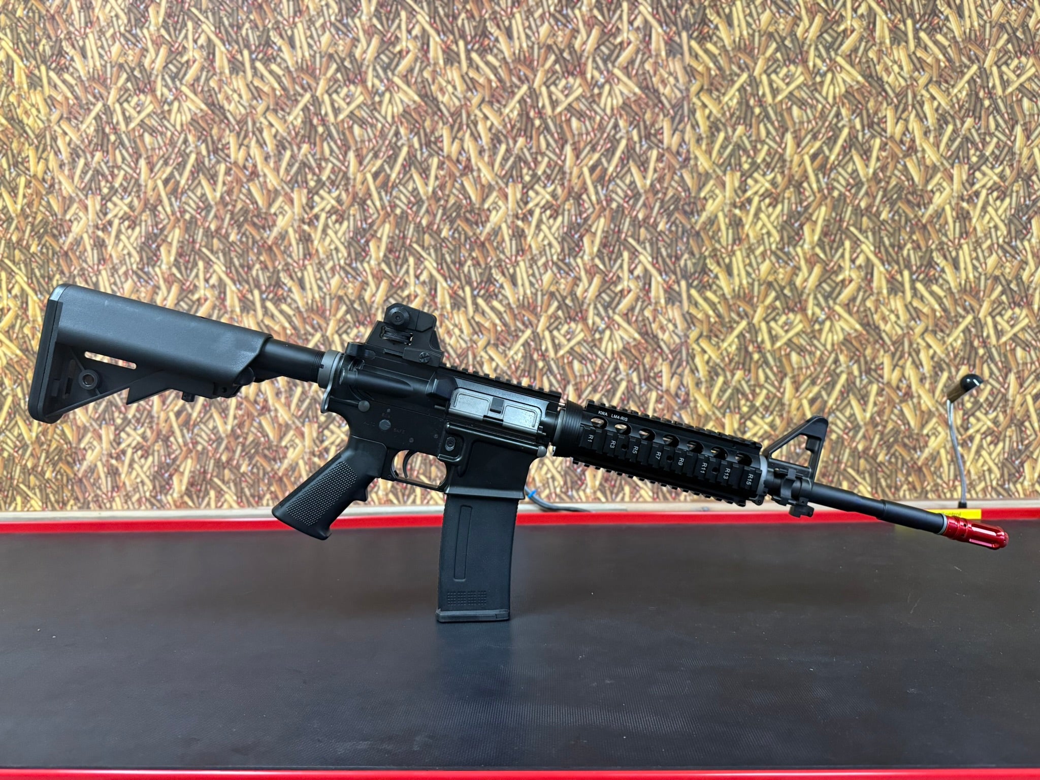 The AR-15 is a lightweight, semi-automatic rifle that is gas-operated and magazine-fed.