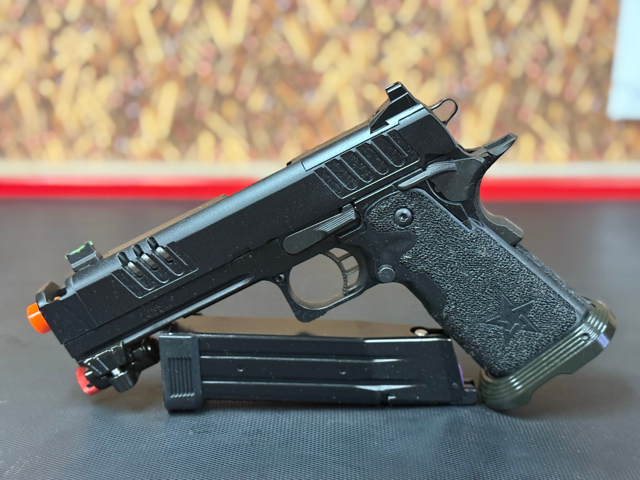 The Springfield 1911 is a single-action, recoil-operated, semi-automatic pistol chambered for the .45 ACP cartridge.